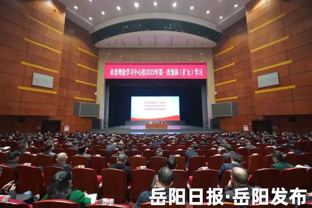 ▲岳阳市委理论学习中心组举行2023年第一次集体(扩大)学习