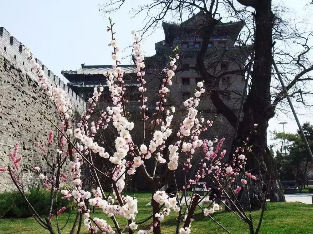 (明城墙遗址公园,梅花盛开。)
