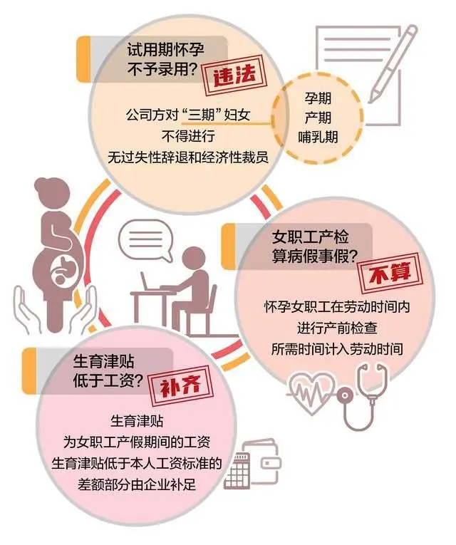 试用期不能怀孕?产检算病假事假?给了生育津贴就不用给工资差额?以上都不对。
