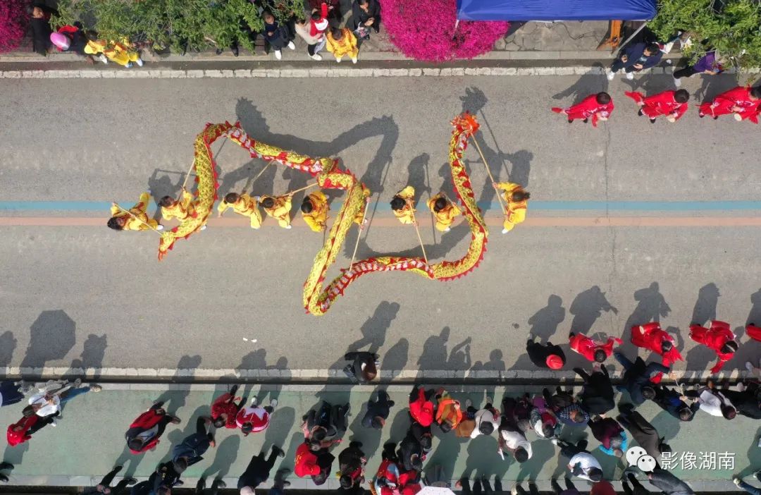 3月21日,安仁县“稻田公园”,人们舞龙欢庆春分开耕。