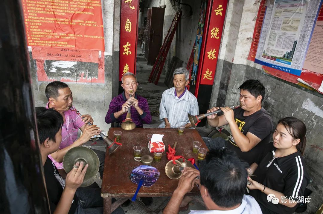 村民组建的喷呐队抓紧排练