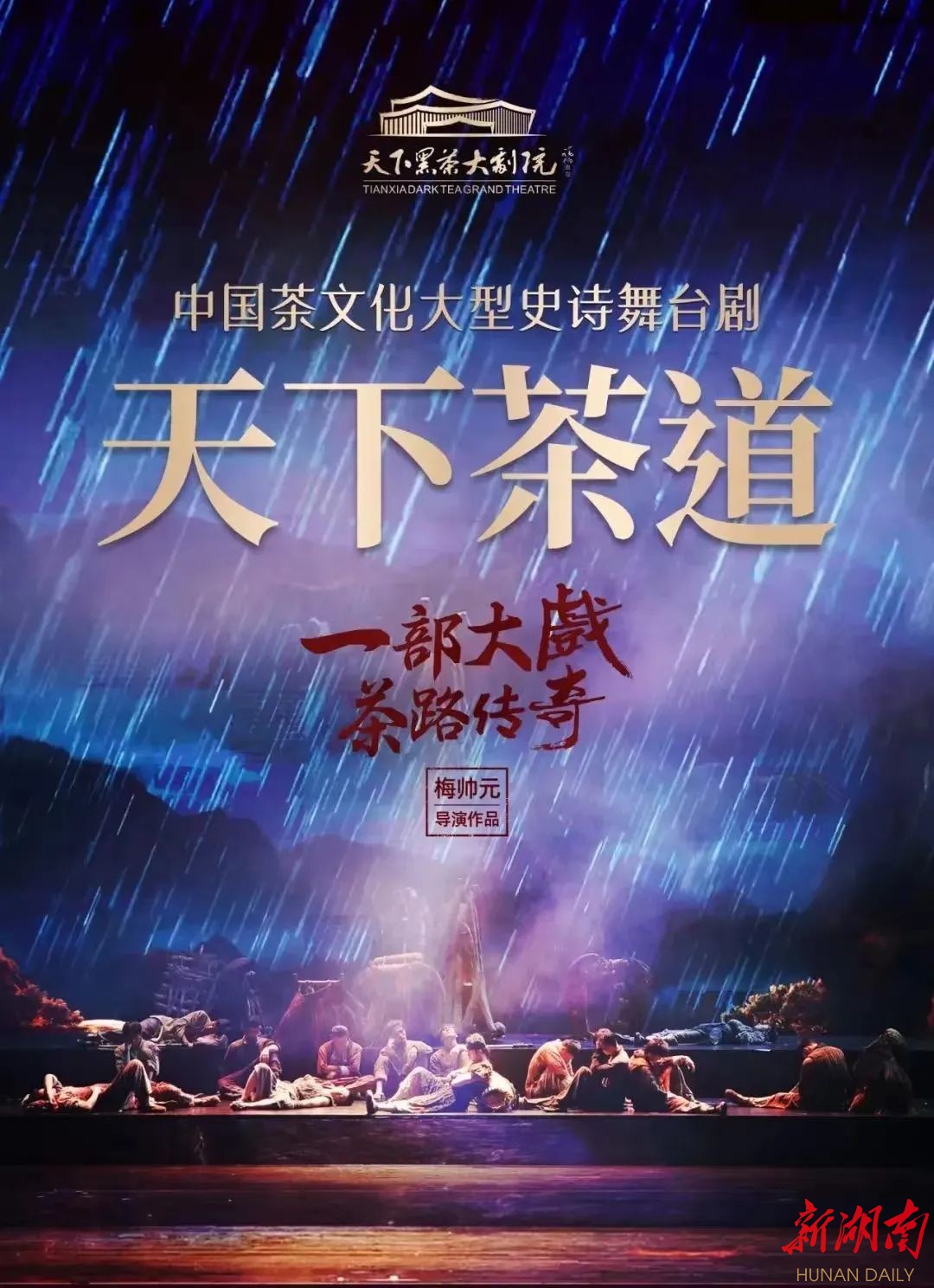 5月7日,由湖南黑茶印象文化有限公司与中国山水实景演出创始者梅帅元团队联手打造的国内首个中国黑茶文化大型舞台剧《天下茶道》在天下黑茶大剧院首次试演。该节目由国家文化艺术界顶尖创编团队匠心创作,以“万里茶路”为创意核心,通过创新歌舞编排,融合舞台声、光、3D成像、多层次机械舞台等高科技手段,集中展示了黑茶制作工艺与梅山文化精髓,体现了“敢为天下先”的湖湘精神和安化人民深沉的家国情怀。