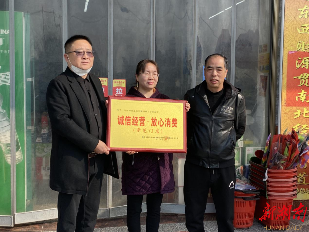 湖南日报·新湖南客户端3月7日讯(通讯员 陈敏 姚文斌 匡卉)“金杯银杯不如老百姓的口碑,我们会坚守初心,做群众满意放心的超市。”近日,益阳市赫山区岳家桥镇日日升超市负责人曹凰英接过“诚信经营·放心消费”示范门店牌匾和证书后,激动地说道。