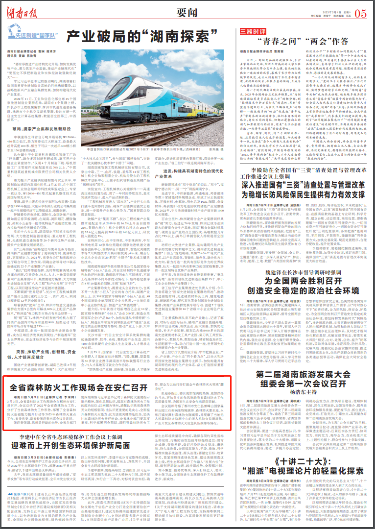 湖南日报3月3日讯(全媒体记者 李秉钧)3月3日,全省森林防火工作现场会在郴州市安仁县召开。会议总结了2022年全省森林防火工作,分析了当前森林防火工作形势,部署了全省森林防火基础能力提升行动等2023年森林防火重点工作。省委常委、副省长张迎春出席会议并讲话。