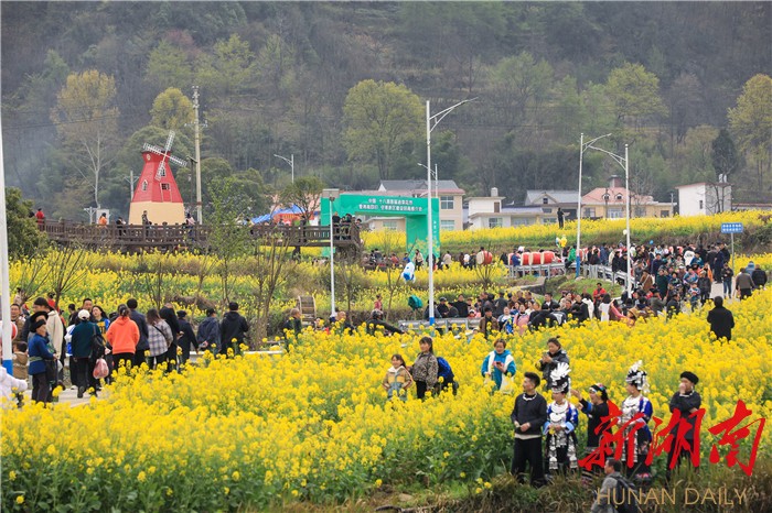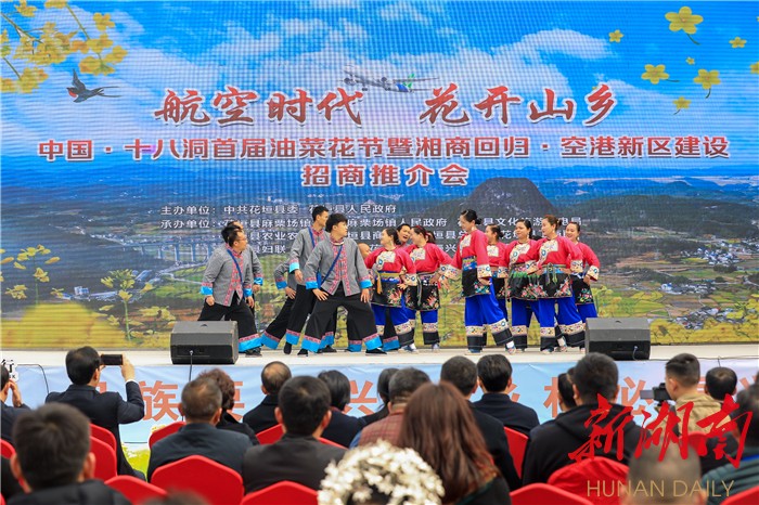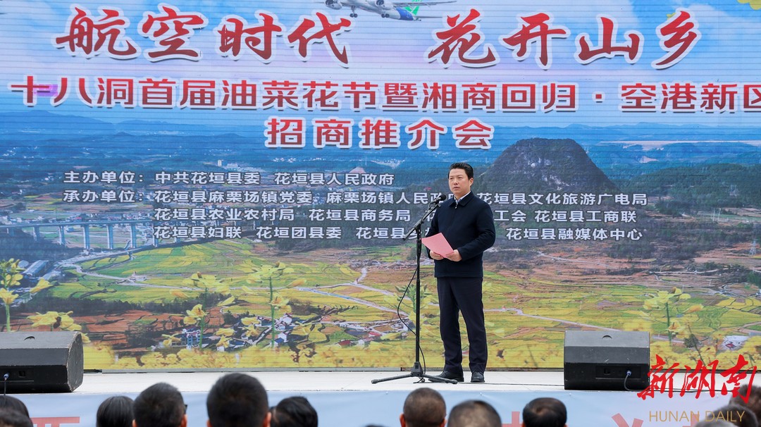 湖南日报·新湖南客户端3月26日讯(记者 向莉君 特约记者 袁昌俊 花垣融媒记者 宋显金 吴向申)3月26日,2023年中国·十八洞首届油菜花节暨空港新区建设招商推介会,在湘西土家族苗族自治州湘西空港新区核心区——花垣县麻栗场镇沙科村举行。花垣以花为媒,现场签订8个项目,涉及乡村旅游、健康养老等方面。