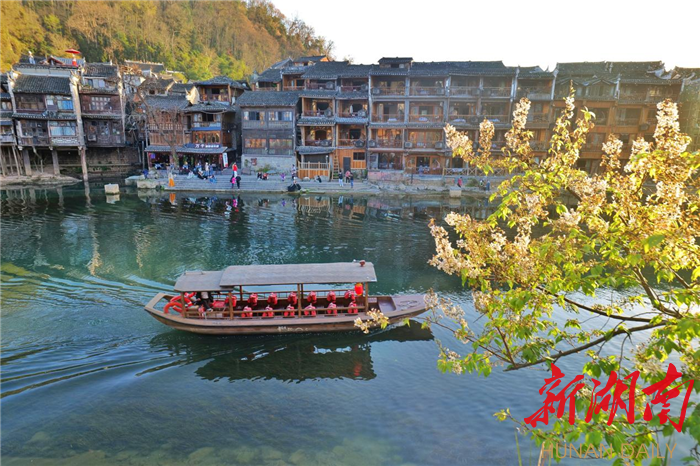 湖南日报·新湖南客户端3月22日讯(特约记者 吴东林 通讯员 石丹丹)初春时节,湘西土家族苗族自治州凤凰古城沱江河畔的几株早樱迎春绽放,花团锦簇、白如皑雪、春意盎然,将古城点缀得格外美丽,成为沱江之上一道靓丽的风景线。