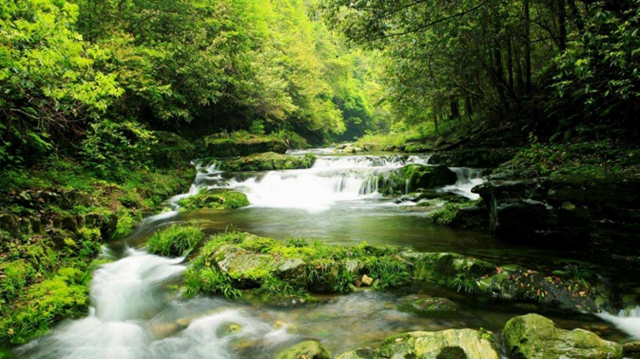 这里最低海拔115米,最高海拔1294米,年平均气温16.2℃,森林覆盖率89.76%,负氧离子含量最高达9万个每立方厘米。