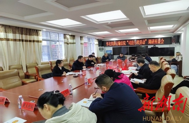 湖南日报·新湖南客户端3月27日讯(通讯员 向颖)3月23日下午,怀化铁路运输法院审判专业委员会蒋斌一行到沅陵开展司法行政活动调研座谈会。沅陵县政法委副书记唐启富参加。