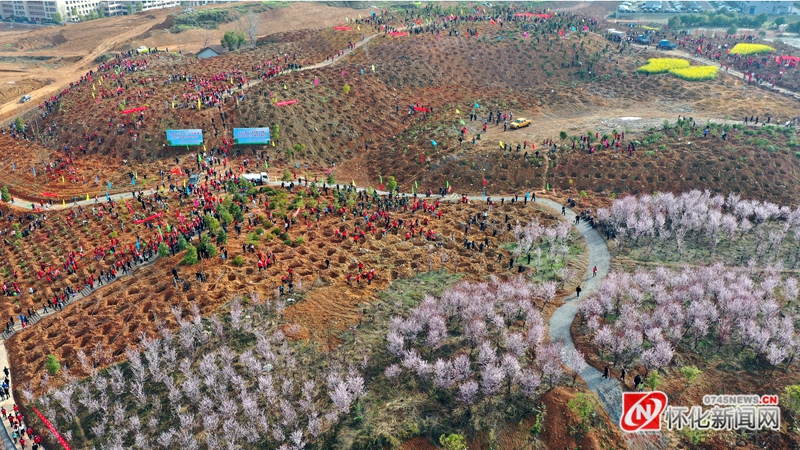 (义务植树活动现场航拍图。怀化日报全媒体记者 田敏 摄)