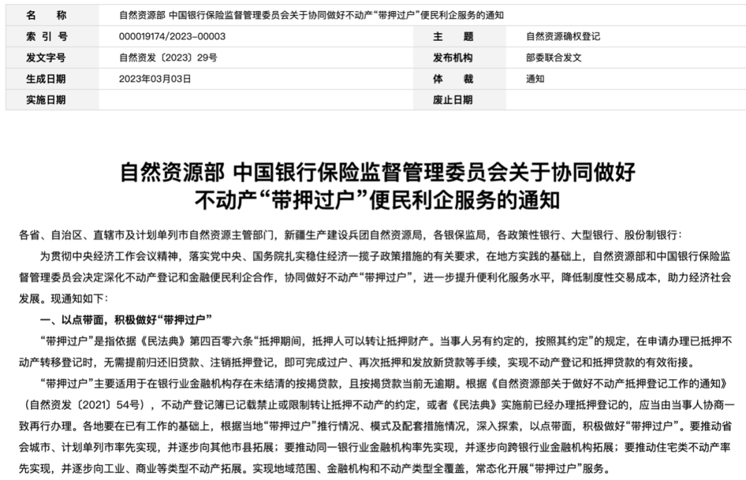 近日,自然资源部、中国银行保险监督管理委员会印发通知,要求协同做好不动产“带押过户”,进一步便民利企。