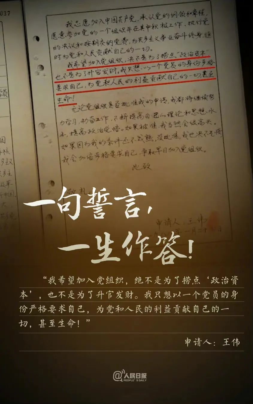 王伟曾在入党申请书中写道:
