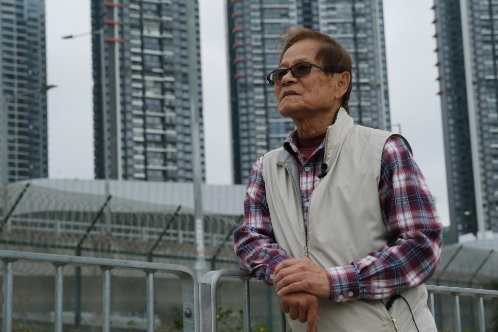 在香港香园围口岸,85岁的万秀平站在旅检大楼前,背后的深圳高层居民楼近在眼前。新华社记者 王申 摄