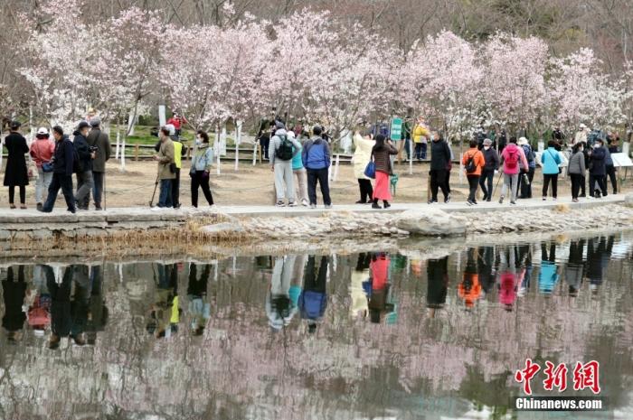 玉渊潭公园中,众多游客前来赏花。 中新社记者 盛佳鹏 摄