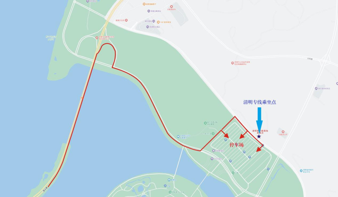 市民可驾车前往欢乐水世界,将车停至欢乐水世界停车场(期间停车场优惠收费2元/小时),随后到达停车场北门乘坐“清明专线”公交车,经专道约20分钟可直达万金陵园。专线车每5分钟一趟,现场工作人员实时调度车辆,畅通市民祭扫之路,不再“堵车又堵心”。