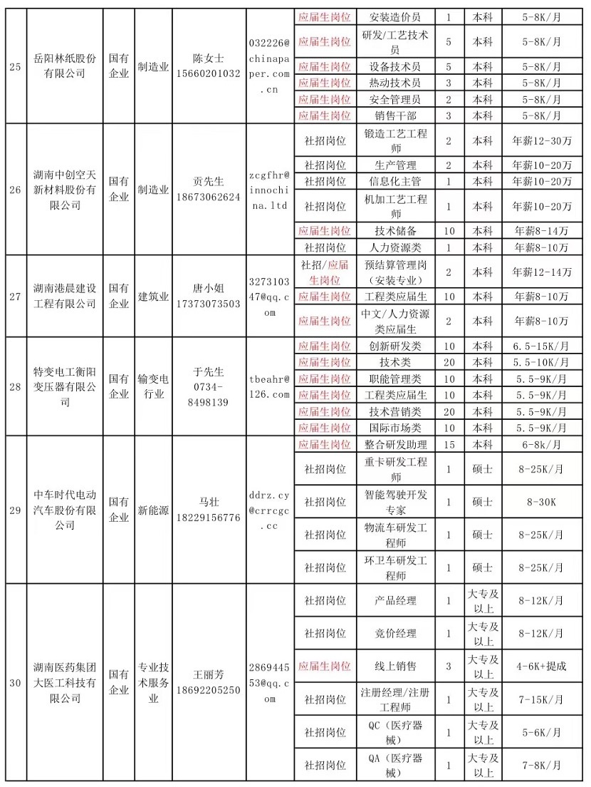 附:招聘岗位信息(30家国有企业、上市企业)