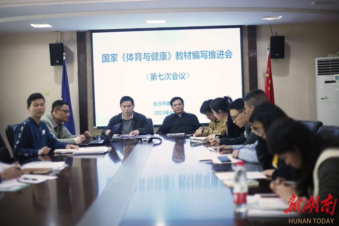 湖南日报·新湖南客户端4月9日讯(通讯员 伯群) 4月8日,华中师范大学版国家《体育与健康》教材编写推进会(第七次会议)在长沙雅礼中学举行。华中师范大学出版社组成四人专家团队出席指导,湖南师范大学体育学院教授陈曙、长沙市体育学科首席名师杨伯群、长沙市初中体育兼职教研员姜伟平等50名老师参会。