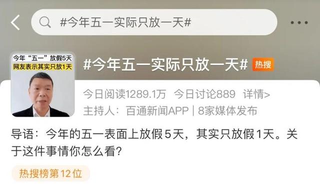 4月23日(星期日)、5月6日(星期六)上班,很多网友表示“其实只放一天”,还冲上了热搜。
