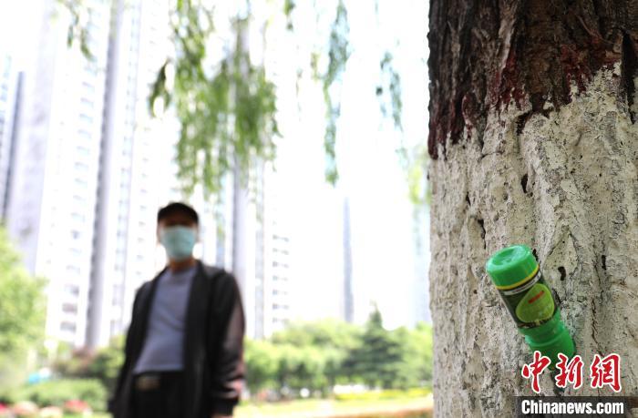 邯郸市园林技术人员早在2015年就开始研制配方,在“抑花一号”化学粉剂的基础上,加入一定比例的酒精和水,注入营养液袋后,通过针头注入树体。2016年通过瓶装制剂赤霉素,在治理现场直接钻孔“插瓶”即可使用。去年,经过治理,该市飞絮量比2015年治理前减少了90%以上。