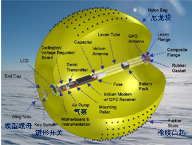 风滚草漫游车内部大有乾坤,各种仪器都固定在内部一根两端连接的管子中,避免在滚动过程中仪器发生损伤脱落;