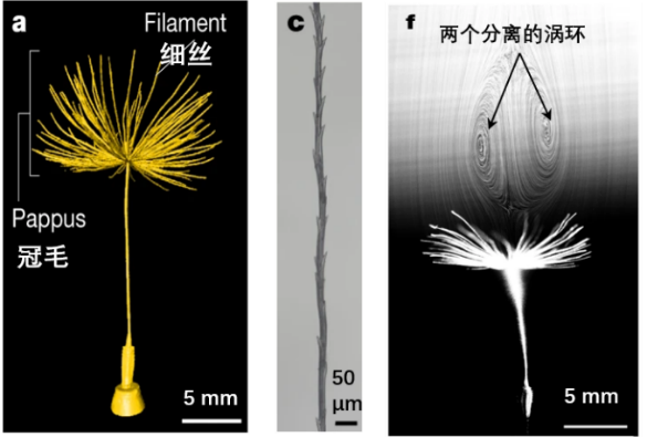 蒲公英的种子和其周围流动产生的涡环。来源:参考文献[1]