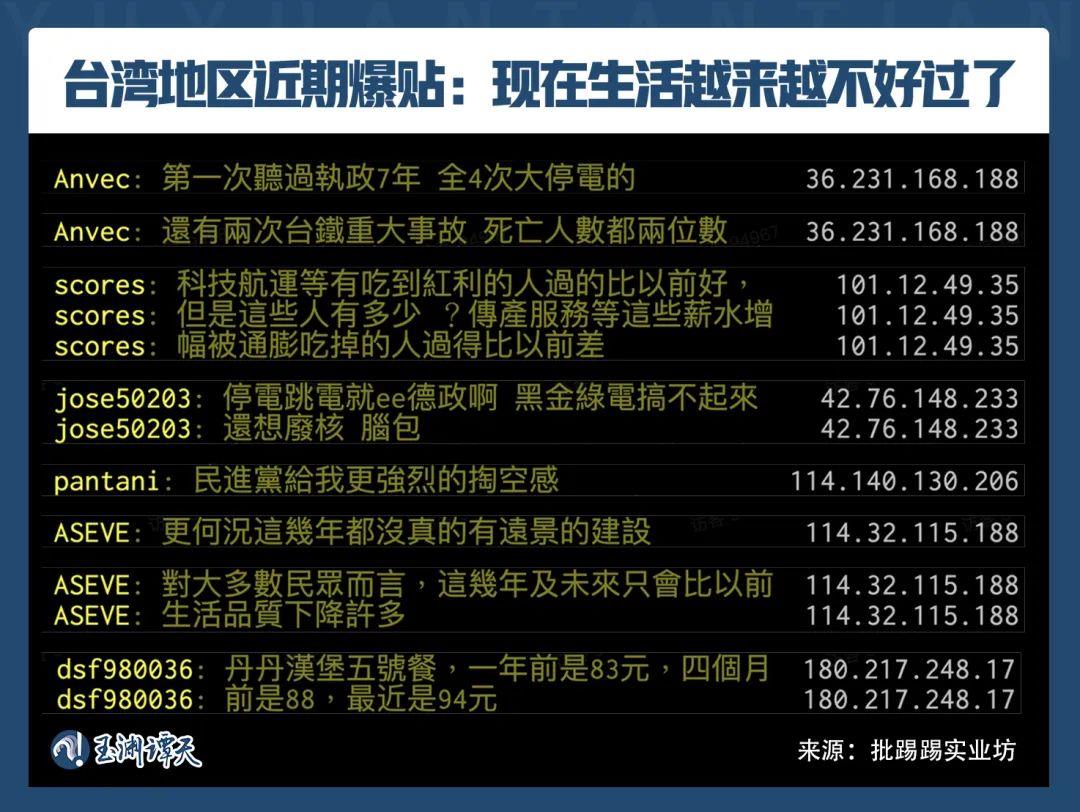 我们从雅虎新闻台湾、脸书、推特、批踢踢实业坊收集了很多岛内网民的评论,从这些评论中我们发现,这通乱窜,让岛内更清醒了。