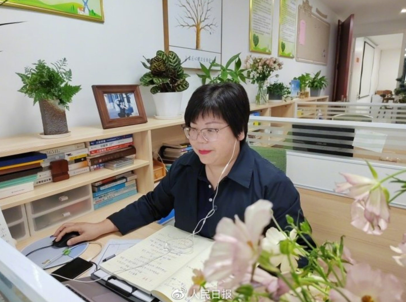 王珍正在通过电话进行心理咨询服务。由受访者供图