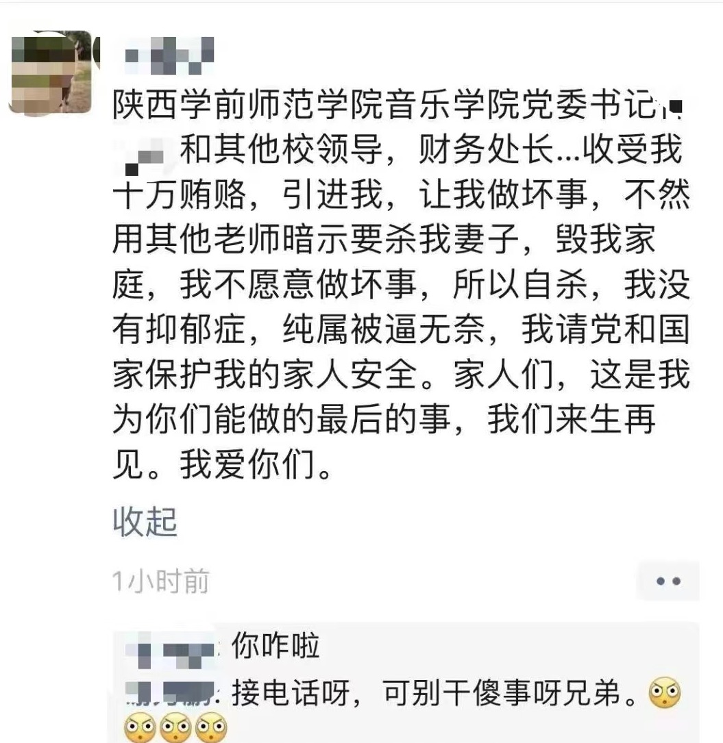 陕西一高校教师发朋友圈控诉领导后坠亡 学校:已成立专班