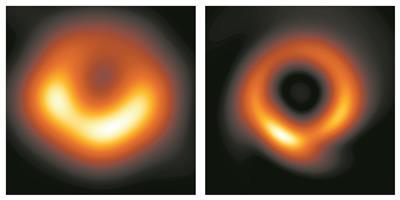 最初由EHT合作组织于2019年拍摄的M87超大质量黑洞(左)和PRIMO算法生成的新图像(右)(图片来源:EHT小组/普林斯顿高级研究所)