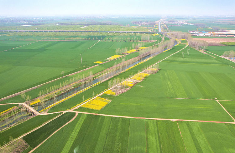 4月,河南省漯河市临颍县石桥乡田间小麦长势喜人,到处呈现一片绿意盎然的景象。受访者供图
