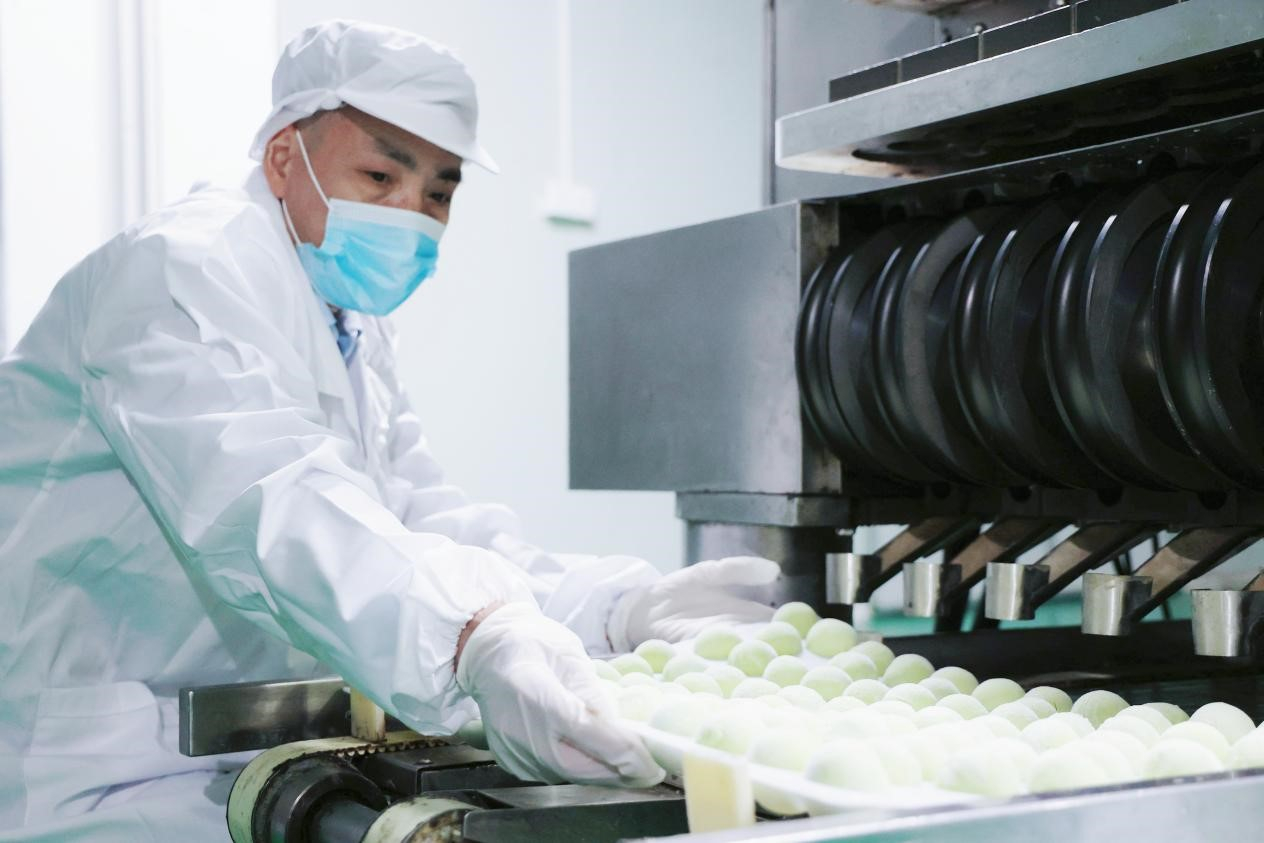 一大早,位于江苏省无锡市滨湖区胡埭镇的食品生产车间,4台大型和面机不停运转,工人们忙着制作的正是当地的特色青团。