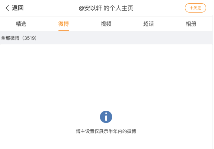 目前,安以轩微博设定为“仅展示半年内的微博”,已不可见任何动态;而安以轩工作室的微博最后一次更新,则停留在了去年1月21日。