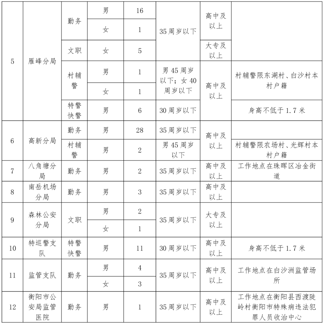 根据《湖南省警务辅助人员条例》《湖南省公安机关警务辅助人员招聘管理办法》等相关规定,衡阳市公安局面向社会公开招聘200名警务辅助人员,现将有关事项公告如下: