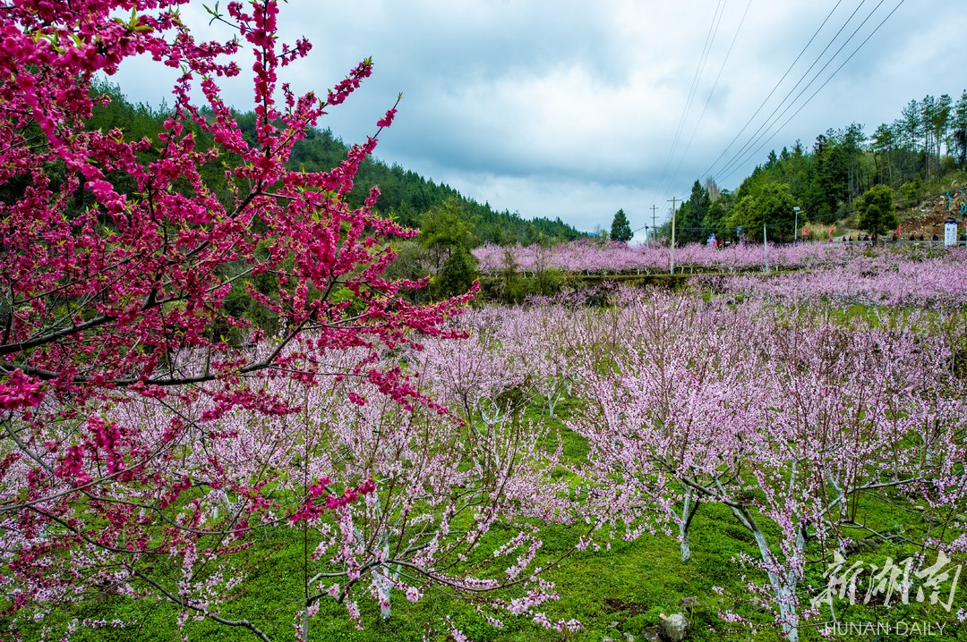 一花一世界,一叶一菩提。自然中的一朵桃花,千百年却是美的化身爱的佳话,“桃之夭夭,灼灼其华”,开千古词赋咏美人之祖。桑植民间称妙龄少女为“桃花女”,夸女人漂亮是“面若桃花”,简约直白,与《诗经》异曲同工。从那以后,桃花每每与文学迎面相撞,便有了陶渊明《桃花源记》,有了李白“桃花潭水深千尺,不及汪伦送我情。”有了杜甫“桃花一簇开无主,可爱深红映浅红”和崔护“人面桃花相映红”,还有了司马光“竹林近水半边绿,桃树连村一片红。”不仅止步于此,辞旧迎新之际,则“争把新桃换旧符”,桃花象征着吉祥如意;《太清方》曰:“三月三日采桃花,酒浸服之,除百病,好颜色。”桃花结成的果实称“寿桃”,桃花代表着健康长寿;桃李满天下,桃花和李花灿烂恣肆,生机蓬勃,用此赞誉老师德高望重,弟子满园,成了文化薪火相传的承载。桃花与人的成长、运势、生命紧紧拥抱,具有哲学和宗教的意味。