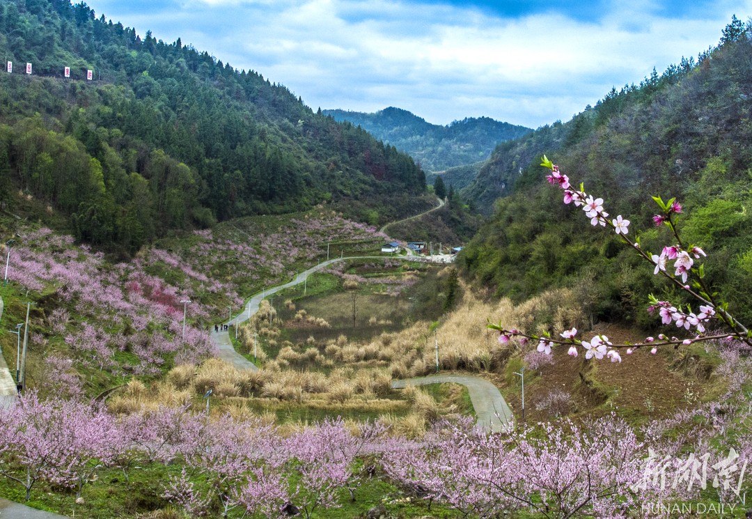 那天,我们一行十六人,起了一个大早,集体去赴一场盛大的花事——湖南桑植县合群村桃花艺术节。大家对这场花事充满期待,一路说说笑笑,难抑欣喜之情。看到路边不时闪过的几树桃花,有人便情不自禁地咏诵起古诗:“竹外桃花三两枝,春江水暖鸭先知。”“隔岸桃花红未半,枝头已有蜂儿乱。”那诗情,那画意,那风景,伴我们飞驰而行。