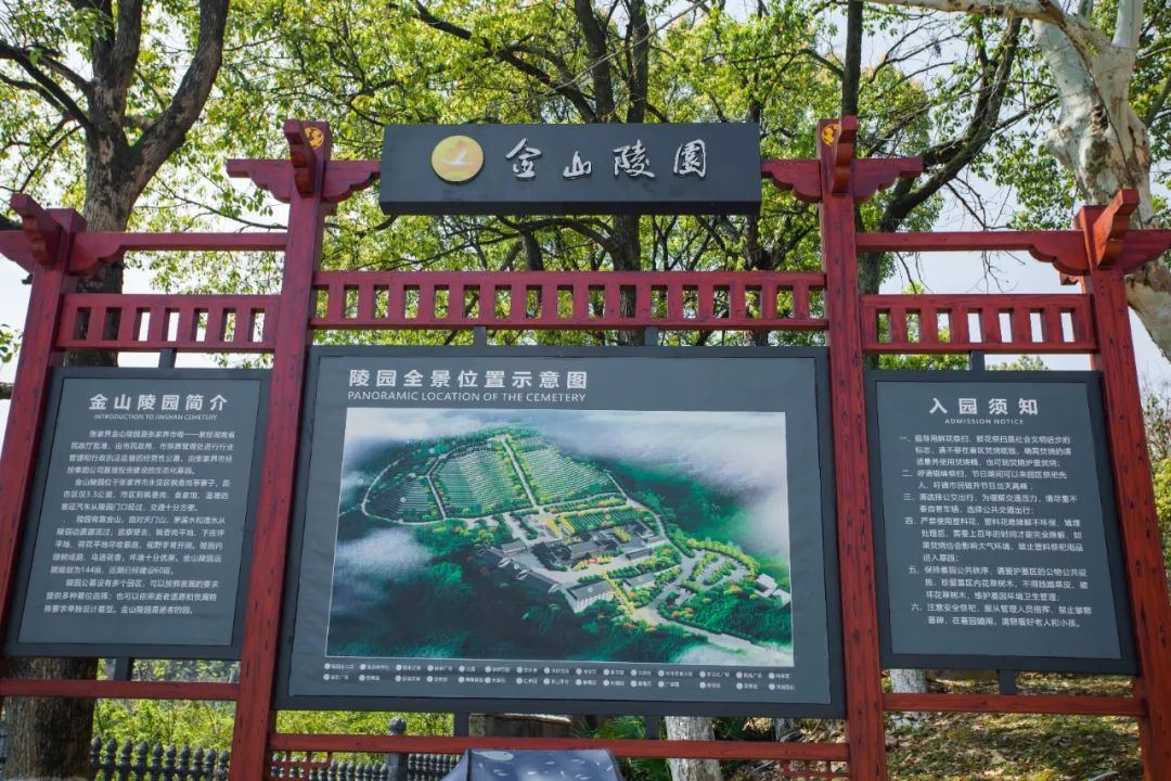 金山陵园规划为1000亩,第一期已建设145亩。陵园区域布局合理、功能齐全,服务设施配套齐备。设有10个宽敞明亮的悼念厅,设施齐备的火化楼和火化线,环境优美的公墓园区,能容纳200人同时就餐的新型食堂,可停300余辆车的免费停车场,同时为治丧提供追悼音乐播放、骨灰盒存放、追思光碟制作、代撰墓志铭、代祭拜代祭扫以及葬仪、祭品等“一条龙”的殡仪配套服务。