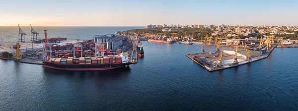 停靠在敖德萨港的集装箱船。图源:视觉中国