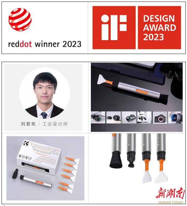 湖南日报·新湖南客户端4月26日讯(通讯员 陈琳 刘盈之 李琪)近日,备受全球设计界瞩目的iF设计大奖和红点设计大奖揭晓,湖南工学院设计艺术学院工业设计专业17届毕业生刘君欢的作品“清洁笔”,从全球各国参赛作品中脱颖而出,同时斩获iF和红点两项国际设计大奖。此次获奖是该校工业设计专业学生继2016年度获得德国红点设计奖、意大利A设计金奖、德国PLUS金奖、中国好设计金奖后再次斩获的国际顶级大奖。