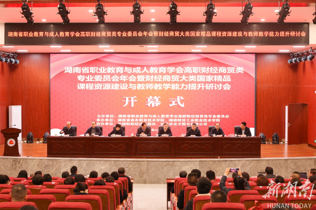 科教新报·新湖南客户端讯(通讯员 杨路平 李江冬)4月25日,湖南省职业教育与成人教育学会高职财经商贸类专业委员会年会暨财经商贸大类国家精品课程资源建设与教师教学能力提升研讨会在湖南商务职业技术学院召开,来自全省45所职业院校的200余名专家、学者出席大会,聚焦数智人才培养展开交流研讨。
