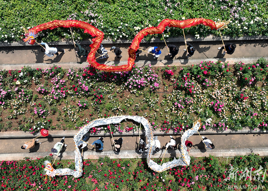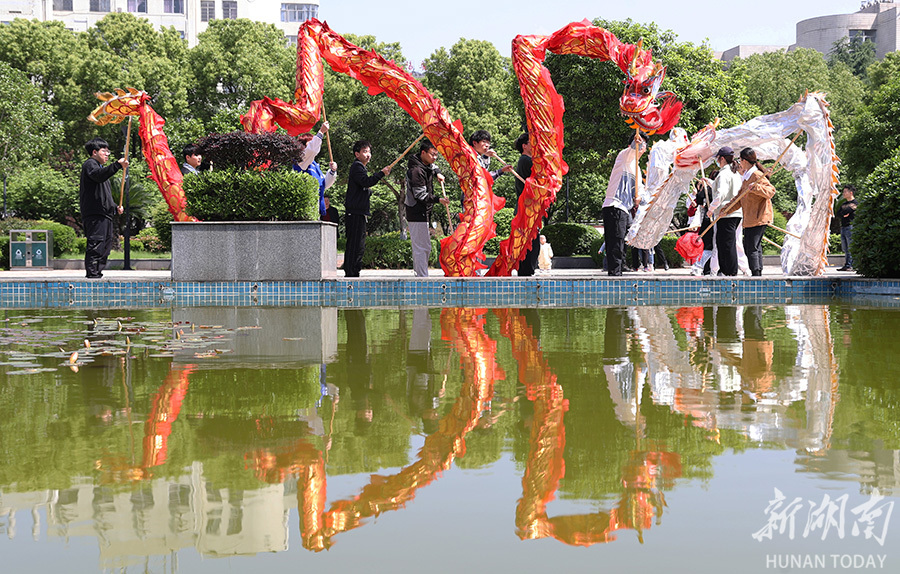4月26日,南华大学,学生在体育课上练习舞龙。该校把太极拳、五禽戏、舞龙舞狮等中国传统体育运动纳入体育课堂教学和考试项目,让传统体育类非遗项目在青年大学生中得到传承与发展。曹正平 李程秀 摄影报道