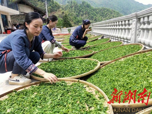 谷雨,是二十四节气中的第六个节气,也是春季的最后一个节气,取自“雨生百谷”之意,指这个时节的雨水会增多,茶叶及谷物等农作物会长的更快。在新化各地都有传承采摘谷雨茶的习俗。据当地老人介绍,谷雨这天的茶喝了有辟邪、清火、明目的功效。