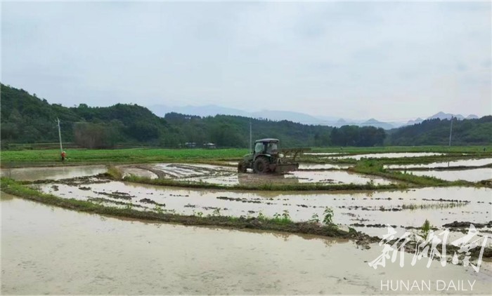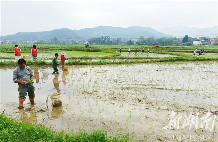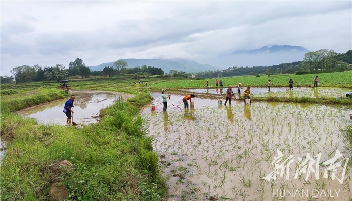 湖南日报·新湖南客户端4月24日讯(通讯员 蒋晓国 唐玲艳)乡村四月少闲时,才了蚕桑又插田。连日来,道县仙子脚镇的村民们利用下雨有利时机,抢抓农时,充分做好田间蓄水工作,开展翻耕、平整、移苗、插种工作,田间地头一派繁忙景象。