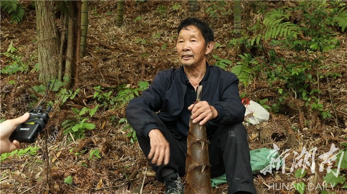 今年78岁的吴昌胜采挖完春笋回家后,便立马联系了村里的合作社,由合作社的人上门把新挖的竹笋全部收购走。