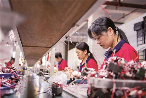 江华瑶族自治县水口镇如意社区的乡村振兴车间,村民在生产线上忙碌着。蒋克青 摄