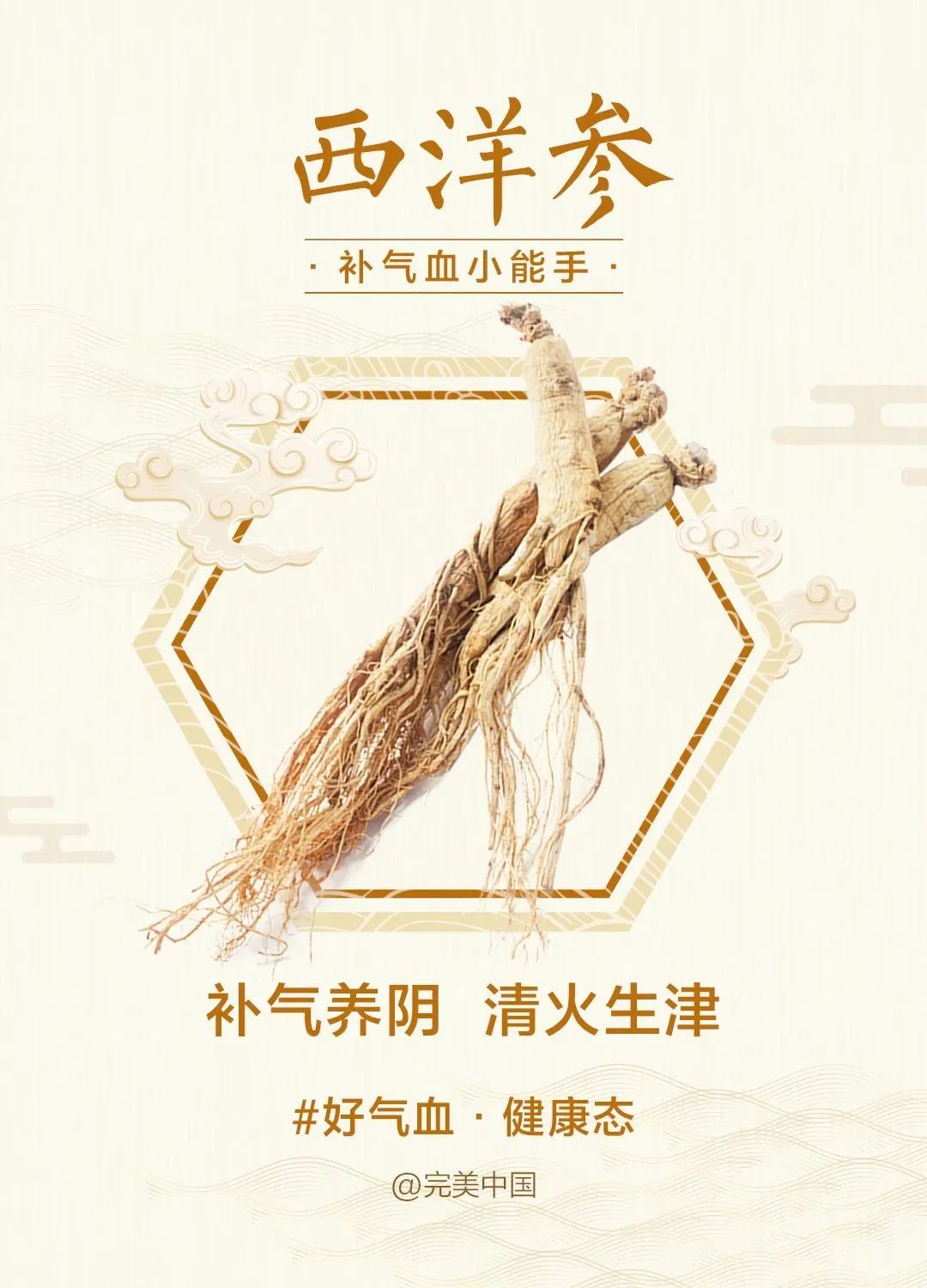 西洋参首载于《增订本草备要》,调理气阴两虚,具有补气养阴、行气散瘀之功。