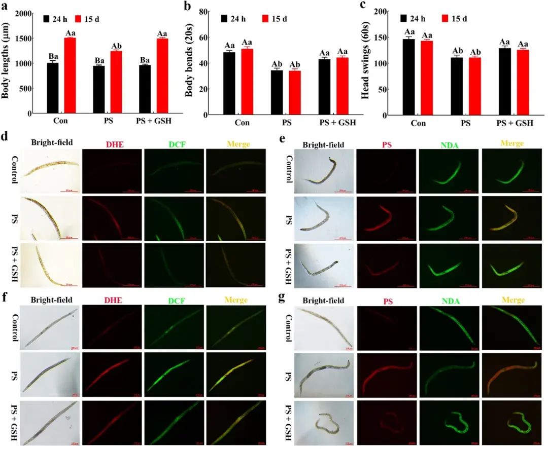 为此,科研人员在培养基中添加外源谷胱甘肽,研究其对急性和长期接触纳米塑料的线虫保护作用。