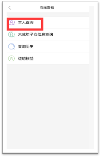 2.点击在线查档界面的【本人查询】功能。