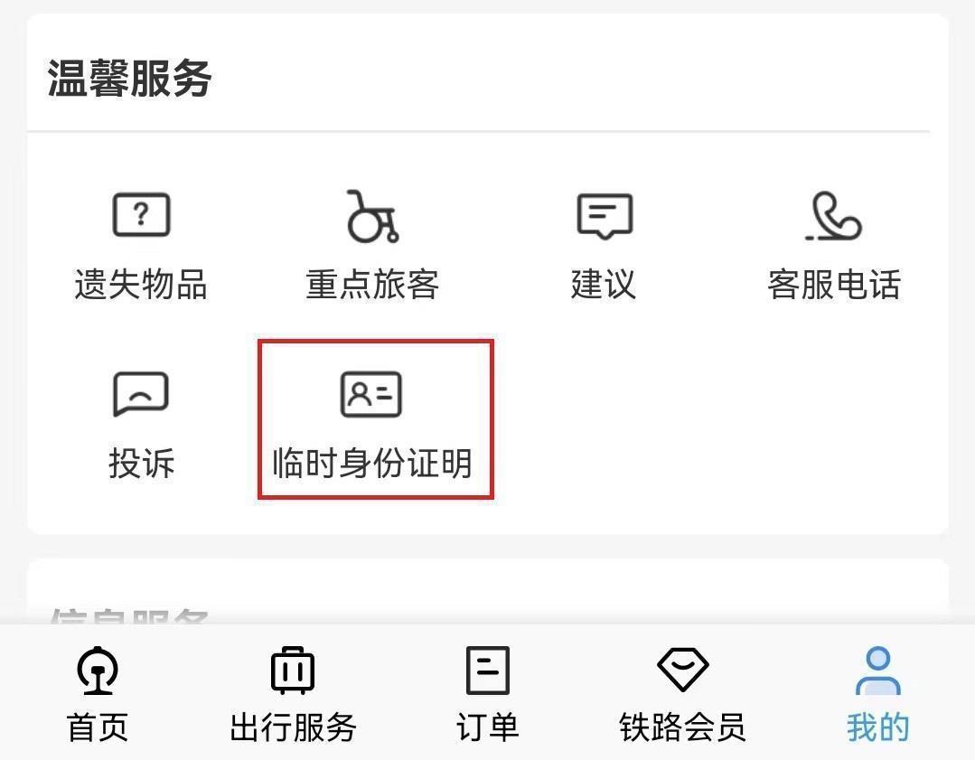 坐火车忘带身份证怎么办?打开“铁路12306App—我的—临时身份证明”可快速办理“临时身份证明”↓