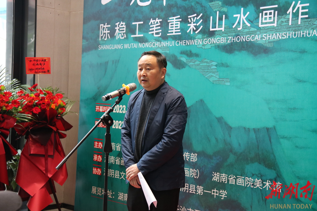 湖南日报·新湖南客户端4月28日讯(记者 刘瀚潞 通讯员 宋明明) 今天下午,山光物态弄春晖——陈稳工笔重彩山水画作品展在湖南省画院美术馆开展。展览展出了艺术家陈稳近些年来创作的工笔重彩山水画精品60余件。