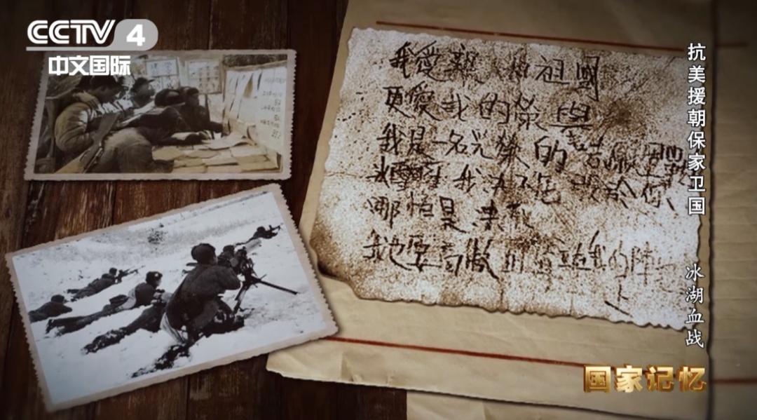 当我们的后续部队上去打扫战场的时候,他们从一位叫宋阿毛烈士的上衣口袋里找到了一个卡片,上面写道:我爱亲人和祖国,更爱我的荣誉,我是一名光荣的志愿军战士,冰雪啊,我决不屈服你,哪怕是冻死,我也要高傲地耸立在我的阵地上。