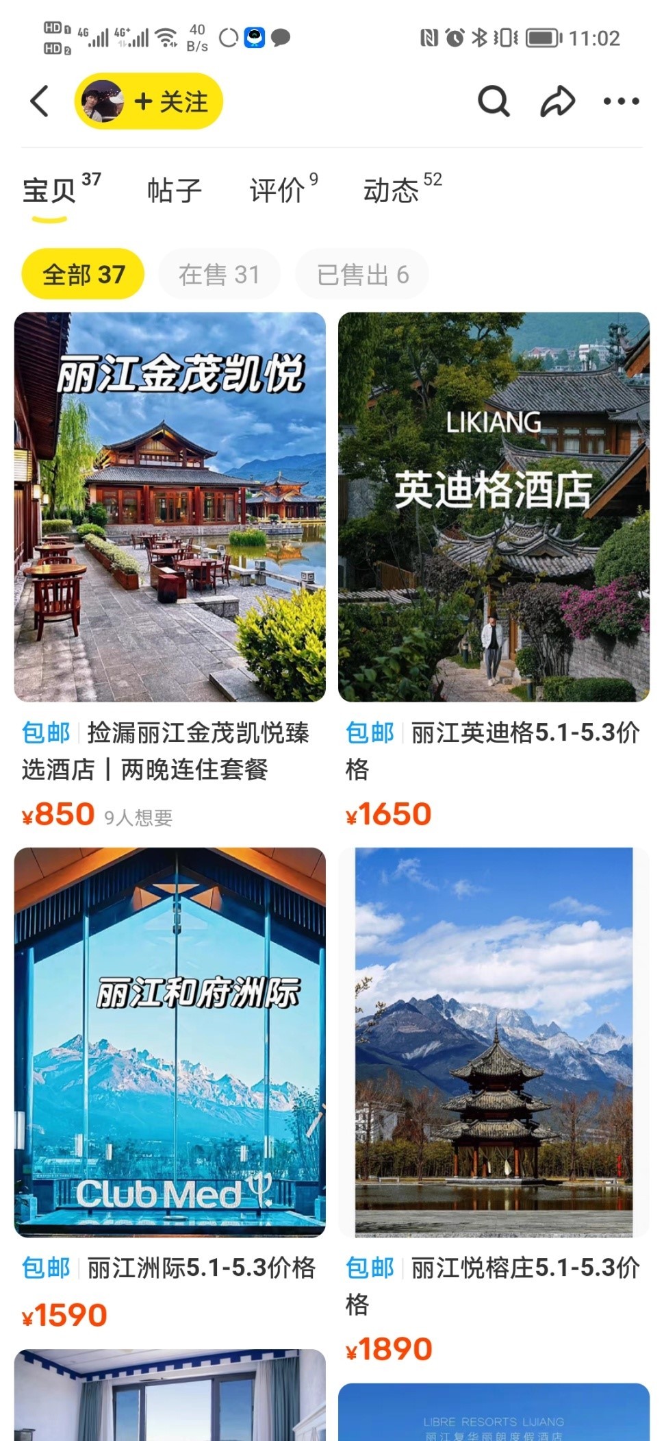 李伟(化名),云南某旅行社旅行定制师,号称专业做定制旅游8年。他的“闲鱼”主页在售有云南31家连锁酒店的客房,且前几套都表明这个假期有客房。